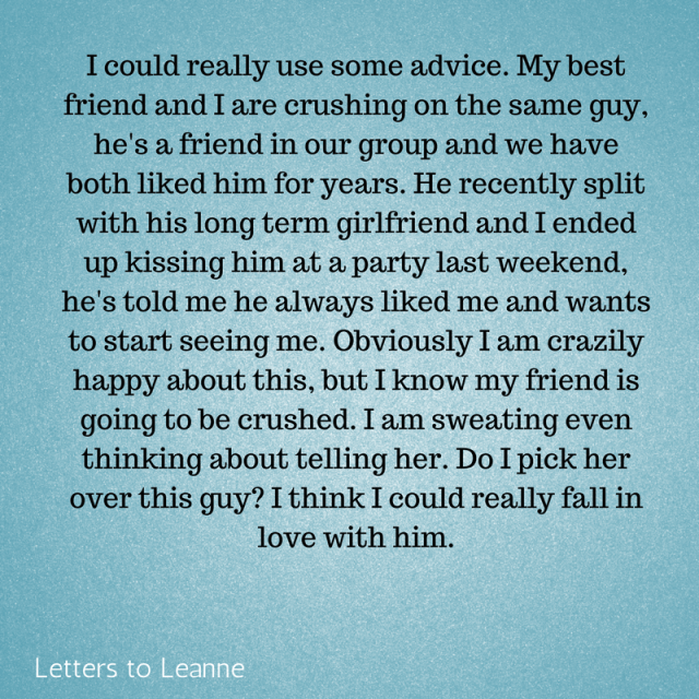 Judging by the fact you even saw this as a huge deal, shows you truly love your best friend, and are a genuine caring person. That gives me the vibe that she is worthy of caring about and probably mutually lovely. Most girls would choose love over friends, even those of us who think they wouldn’t.