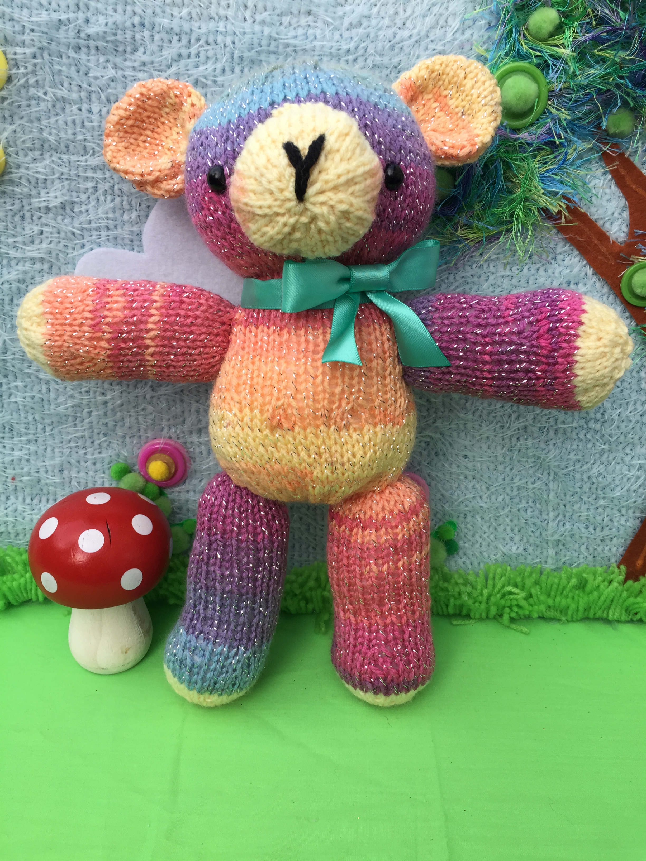 The pattern follows Rachel’s method on assembly and uses her images, but if you want to make the bear look more like my rainbow version, these are my tweaks.