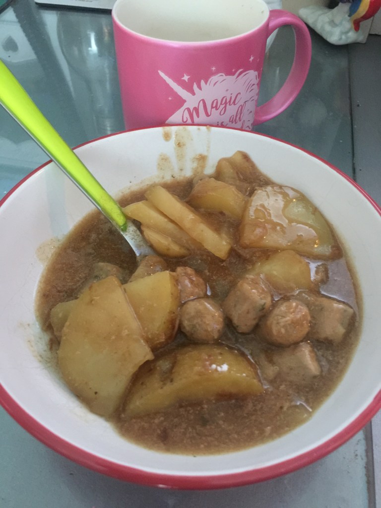 This was our lunch next day after I added only a tablespoon of thickening gravy granules to the whole pot.