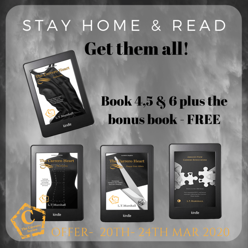 As promised we have put 4 of the Carrero series books free for 5 days. Starting with the 2nd trilogy after we released the first trilogy for free earlier this month. On top of being free we have reduced the whole series in price and will be applying some price slash offers and freebies every month for the duration of our Covid lock down. Just check back with my blog for updates. We aim to keep you in Carrero for as long as possible and do not forget the standalone Just Rose.