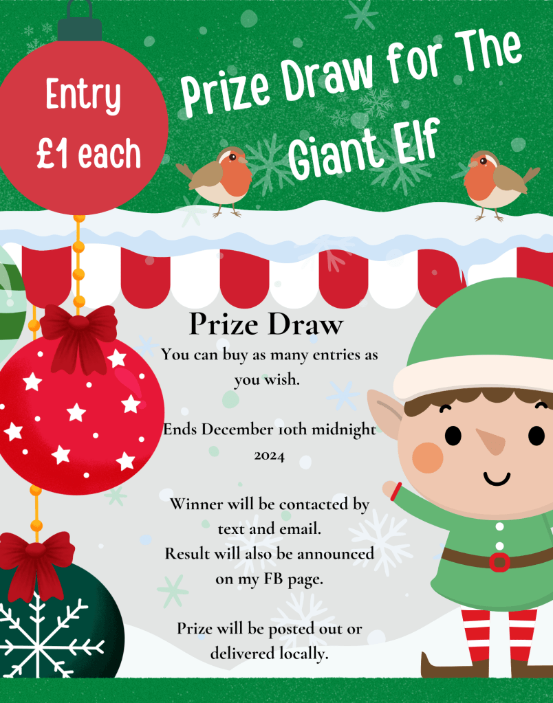 This prize draw is a ticket entry, so you buy a ticket for one pound, and it’s placed in the box to be drawn at the end of the competition. You can buy multiple entries to be in with a larger chance of winning. Due to the size of the elf and Christmas post, this is only open to the UK. I will run a new draw in the new year with a smaller prize that can be won internationally.
