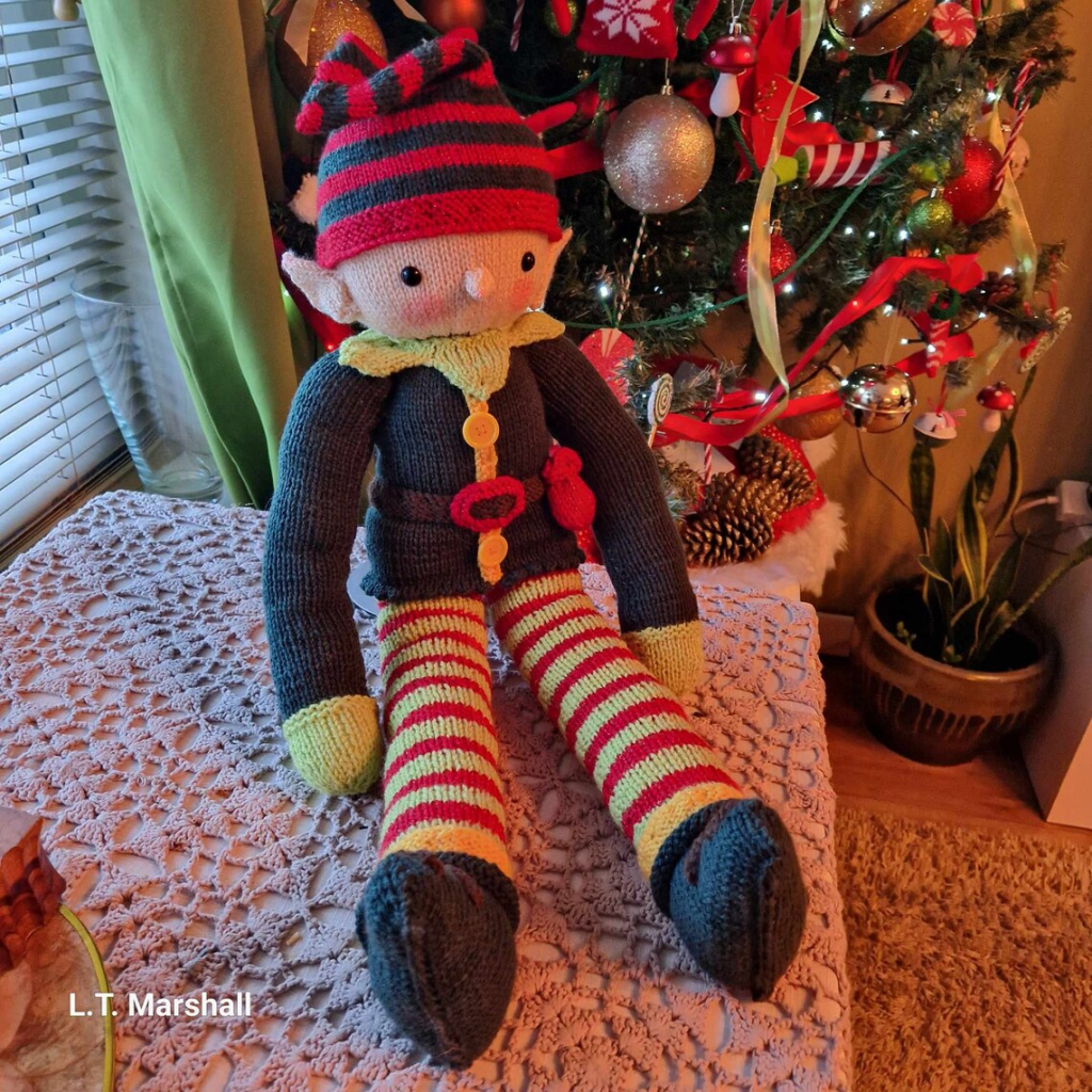 I am running a prize draw for my giant elf decoration. Hand knitted by me and my own design. If you want to knit one yourself, then I have the pattern available here on my Etsy.