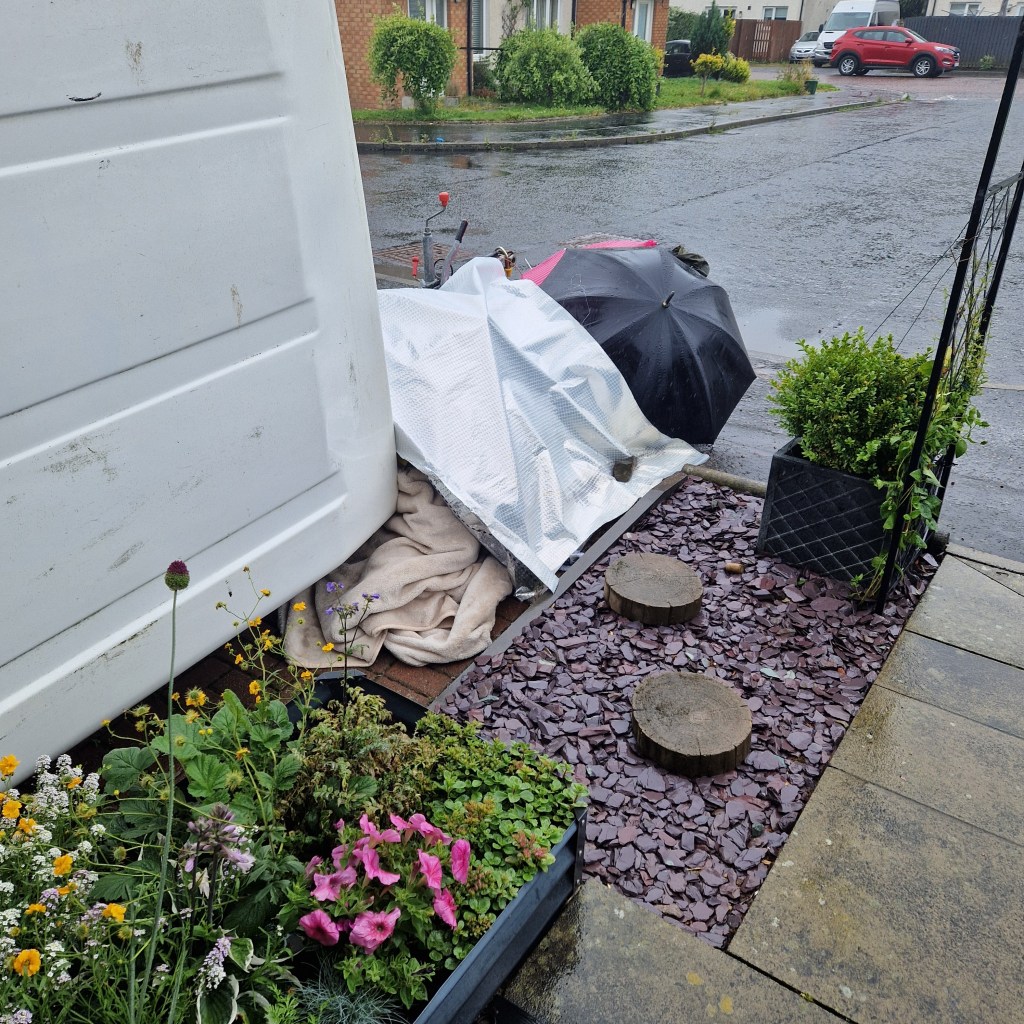 It started with sandbags and ended in A&E. Zack’s knee gave out while we were moving them. He collapsed in pain and there was no moving him. I shielded him from the wind and rain while we waited on the ambulance.