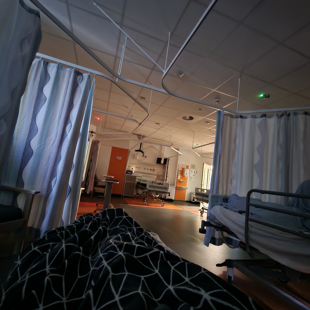 He’s recovering now and we have the whole ward to ourselves for the night. One tiny silver lining.
